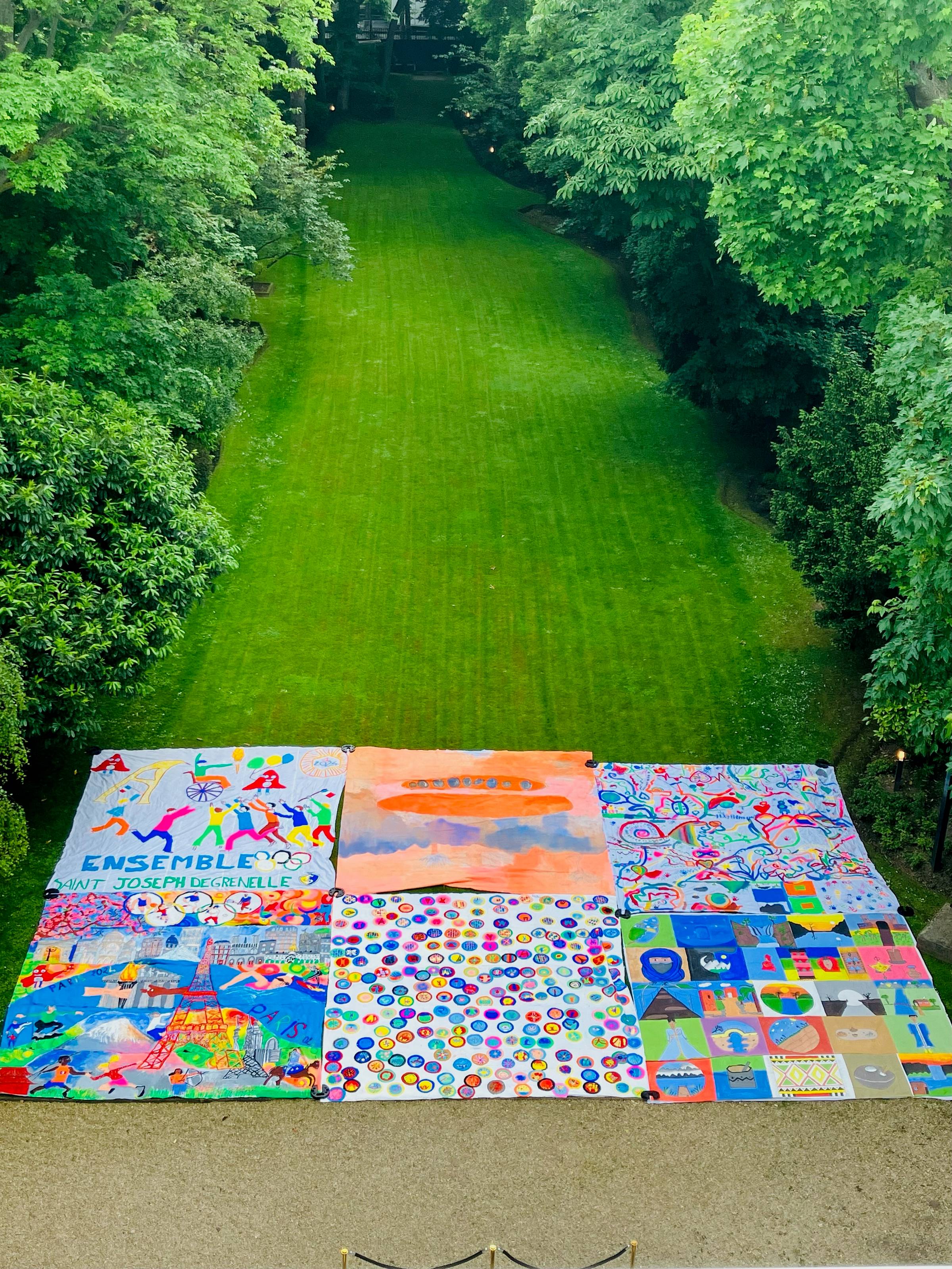 Chères amies et Chers amis de la Plus Grande Peinture au Monde, Les écoles participantes: en haut, de gauche à droite, Saint Joseph (75015), Jardinet (75006), Bernard Laurent (47230), en bas, de gauche à droite, Saint Ouen (75107), Madame (75006), et Collège de Cascades (Maroc) Nous avons de belles opportunités pour exposer les peintures déjà réalisées pour PARIS 2024. Et ce n’est qu’un début! Les événements à ne pas manquer: