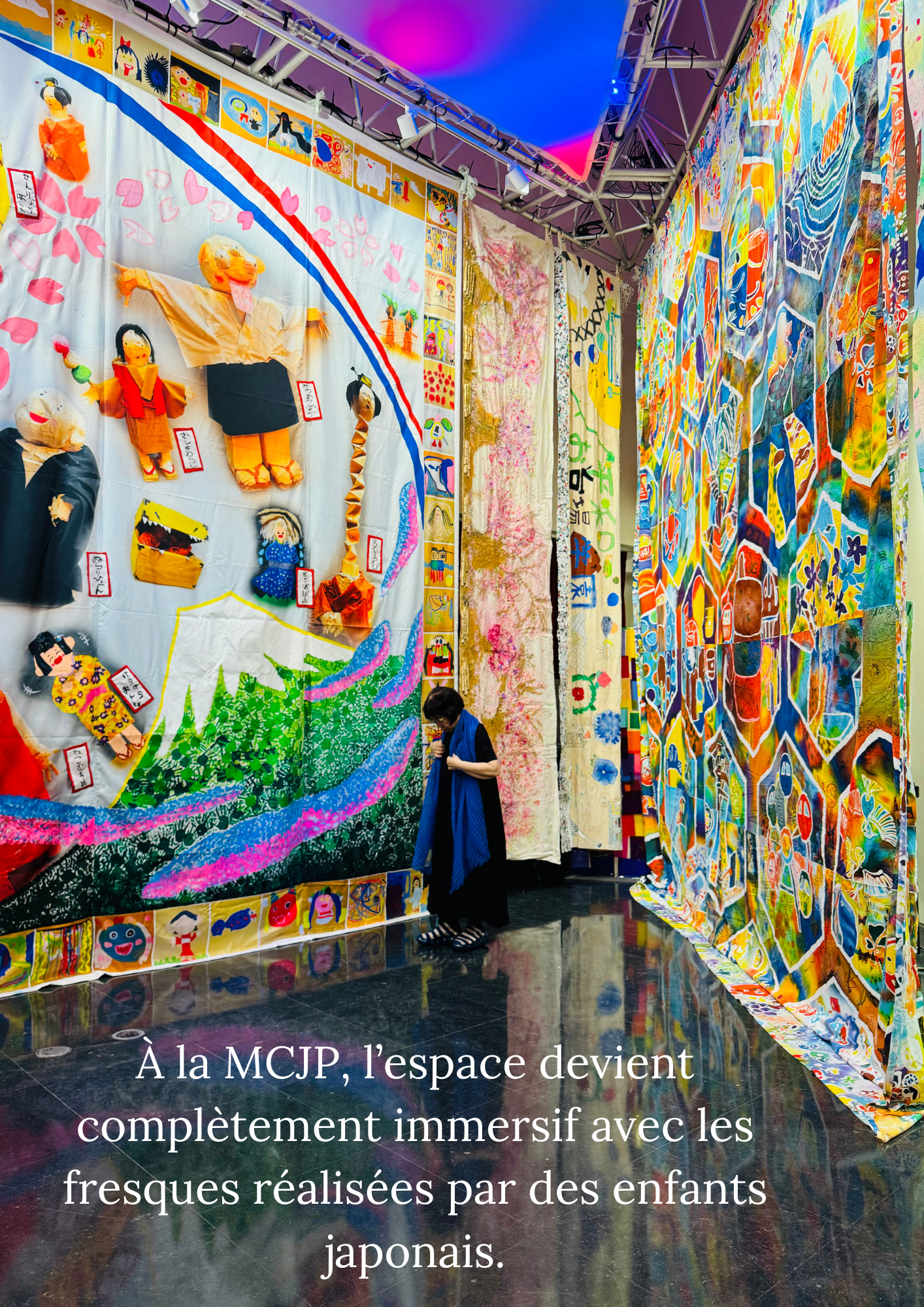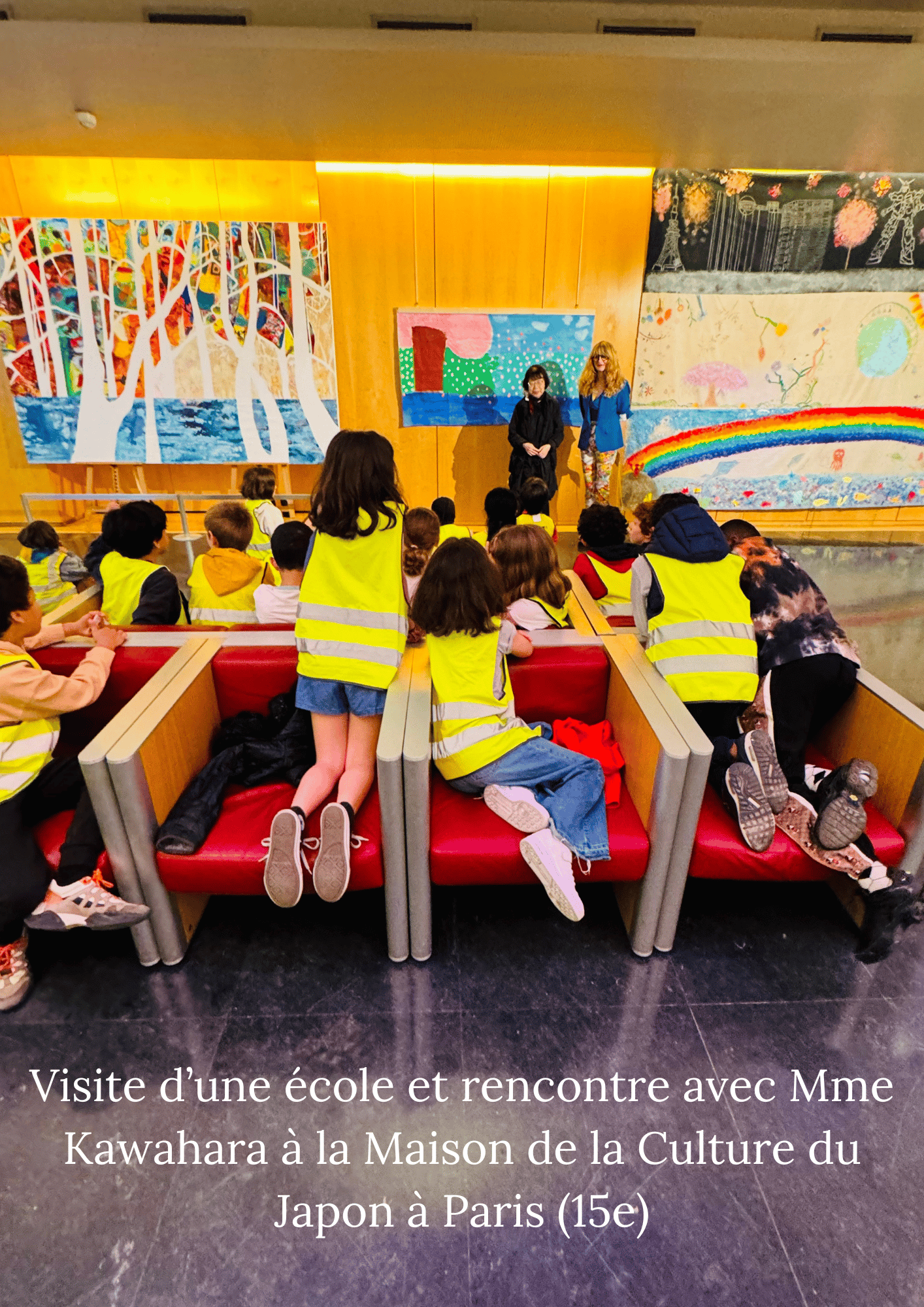 Nous avons déjà accueilli de nombreux visiteurs cette semaine, près d'une centaine de personnes étant venues découvrir l'exposition. Nous sommes ravis de pouvoir établir un dialogue et de nous connecter avec le public à travers ce projet et les fresques réalisées par les enfants. Jeudi dernier, une classe de CM1 d'une école parisienne nous a honorés de sa visite. Les élèves ont été particulièrement impressionnés par les peintures réalisées par leurs homologues japonais, notamment celles des enfants en situation de handicap.